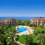 is located in an exceptional seafront development that offers one and two-bedroom apartments and penthouses, and three-bedroom detached villas. There are two communal swimming pools (one of which is heated during the winter months), set in beautiful and spacious landscaped gardens. The project also features a private clubhouse for residential use.