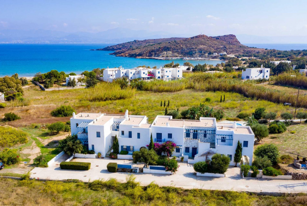 is a stunning property filled with natural light and offering breathtaking views of the Aegean Sea. Nestled within a traditional ‘Kyklades’ style development in the charming fishing village of Molos, this villa provides direct access to a communal swimming pool.