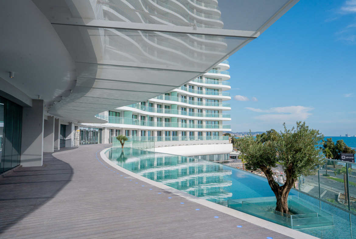 is a Seafront apartment that enjoys breathtaking views of the Mediterranean Sea at every angle. Being part of Limassol Del Mar, it expresses the island’s ‘new wave’ of architecture through its unique high-rise curvilinear design, which fully capitalises on the plot’s 170 metres long sea frontage.