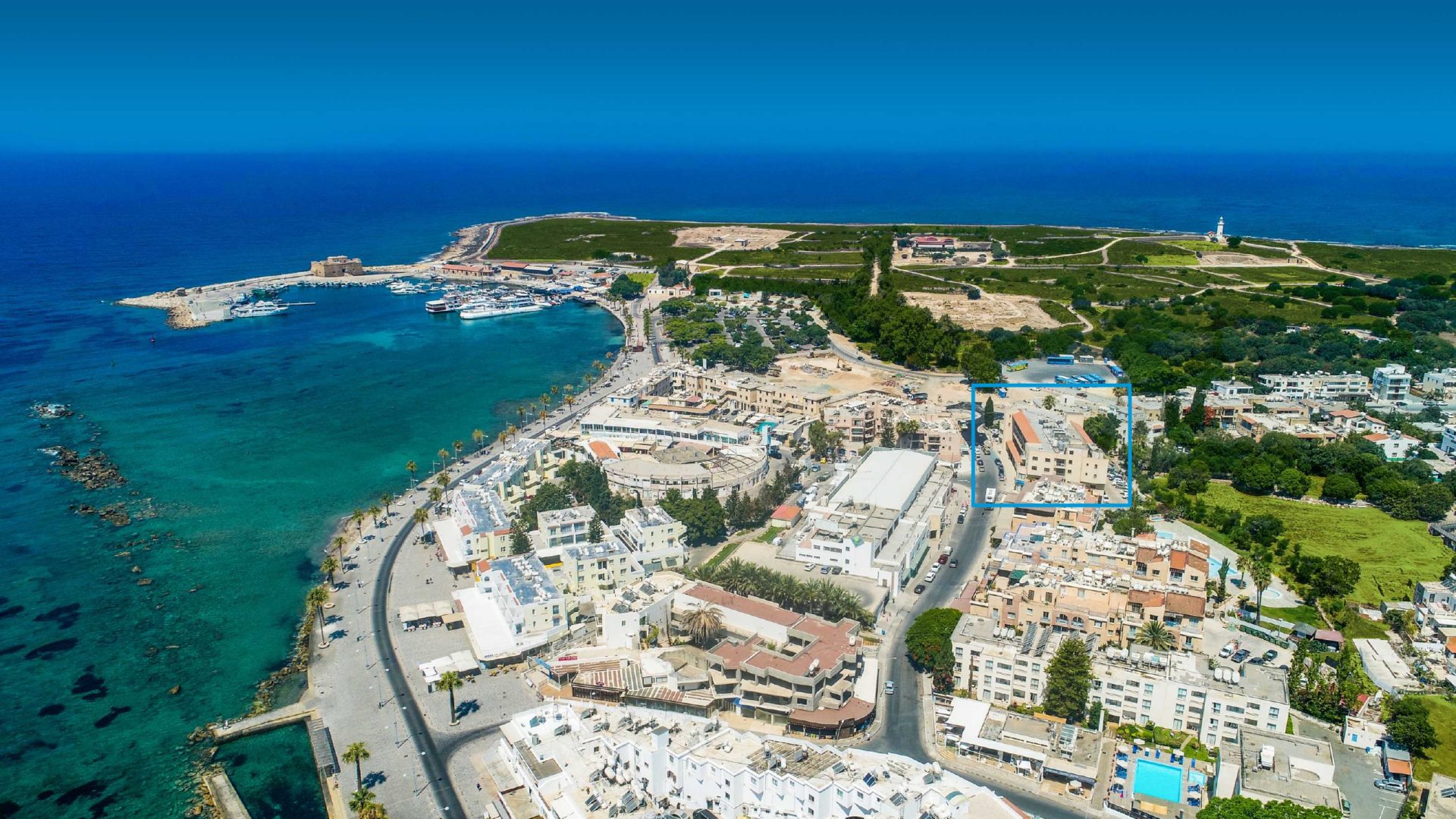 is situated in the heart of the tourist area of Kato Paphos. Within walking distance to the harbour, five star hotels and resorts, and the blue flag-awarded beaches of Kato Paphos. The centre offers ample parking, and a bus stop for easy access.