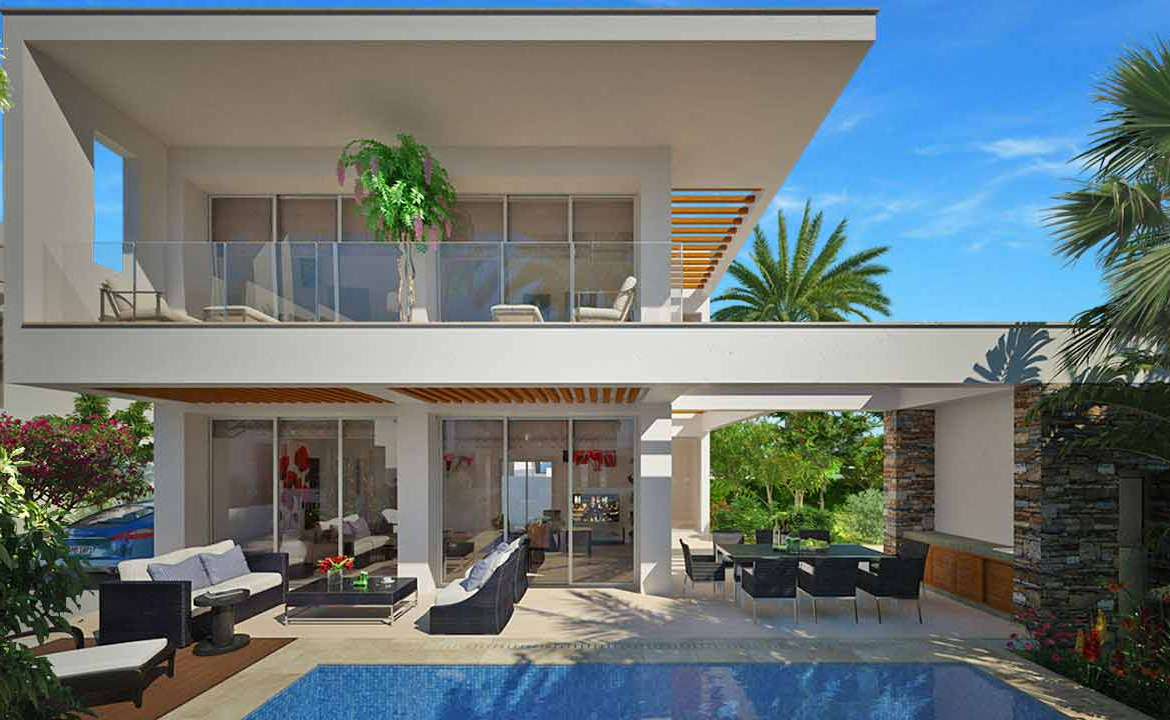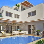 Aquamarine Coastal Villas, Villa No. 10 is a modern design 4 bedroom villa, located in the heart of the tourist area of Paphos in Cyprus. The villa is designed in a large plot and enjoys a private swimming pool with spacious outdoor areas. The villa is located in front of one of the most famous sandy beaches in Paphos and enjoys easy access to a variety of restaurants, pubs, bars 5-star beach resorts and other amenities.