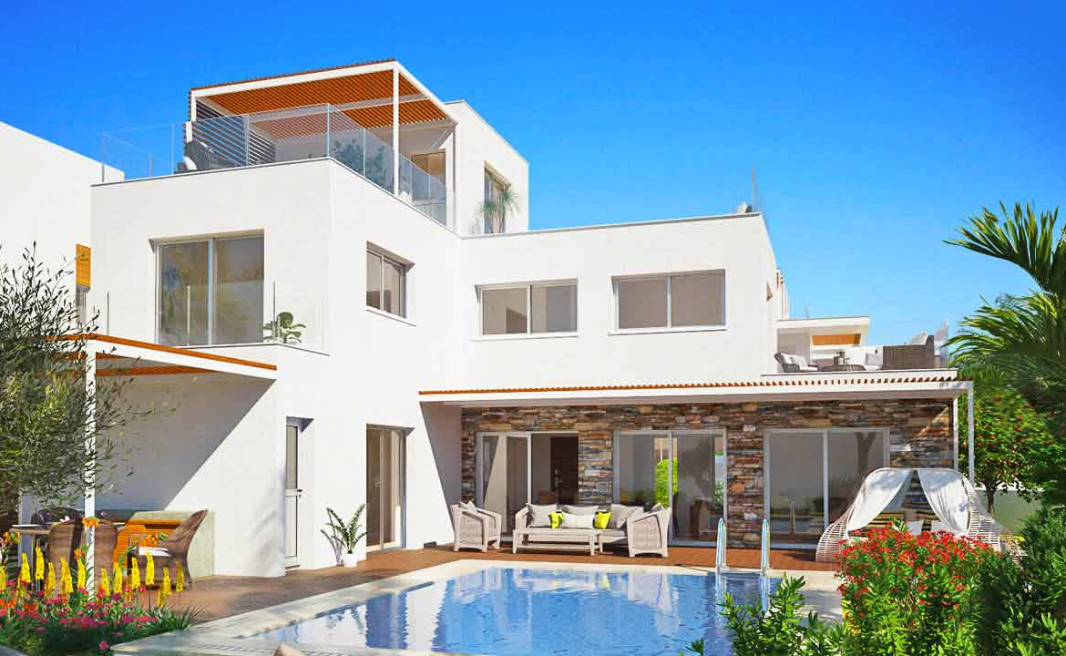 Aquamarine Coastal Villas, Villa No. 36 is a modern design 4 bedroom villa for sale, located in the heart of the tourist area of Paphos in Cyprus. The villa is designed in a large plot and enjoys a private swimming pool with spacious outdoor areas. The villa is located in front of one of the most famous sandy beaches in Paphos and enjoys easy access to a variety of restaurants, pubs, bars 5-star beach resorts and other amenities.