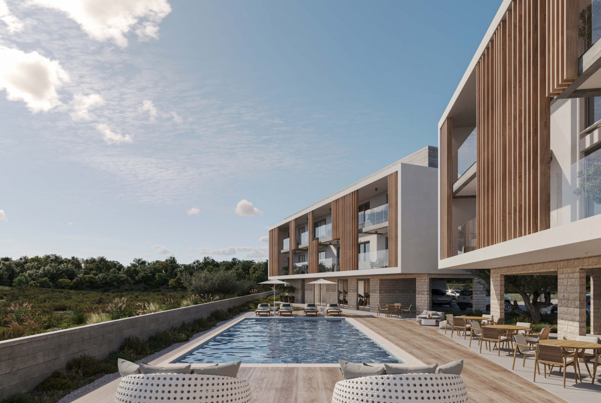 Oculus” comprises of 2 blocks of studio, 1-bedroom and 2-bedroom apartments and a plethora of on-site facilities. It is located in the sought-after area of Universal in Pafos, the most popular area for short-term rentals in Cyprus.