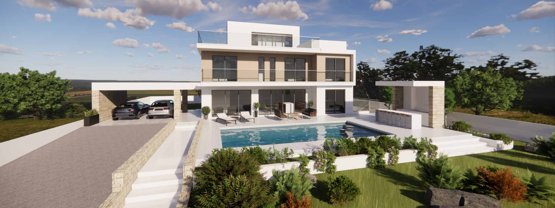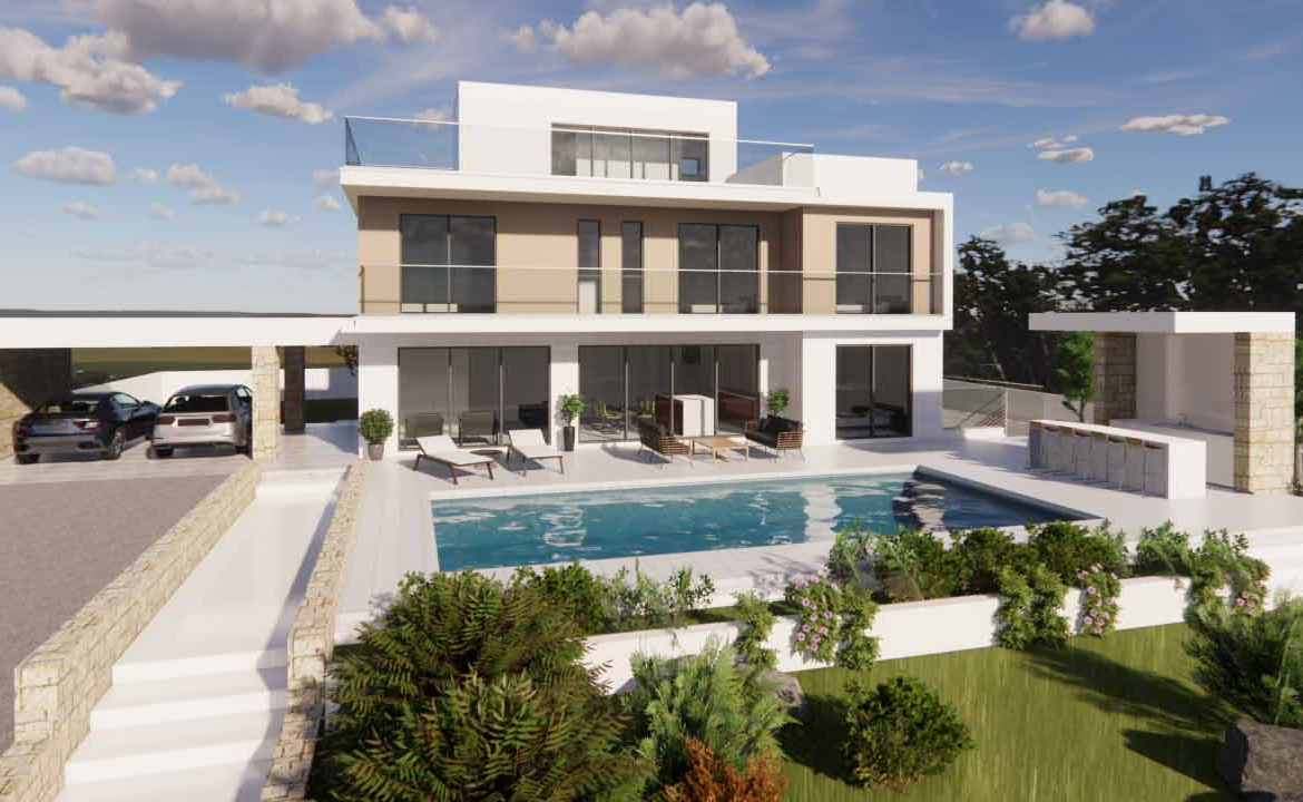 Sea Caves A Villa in Plot 24 – is a stunning modern 4 bedroom villa for sale with four levels, designed in a large plot of 1,057 m2 in the renowned Sea Caves area of Peyia. The villa is designed with an outdoor swimming pool, a large covered parking, large indoor and outdoor spaces, large basement with store rooms , showers and utility rooms, and an uncovered veranda in the roof garden. The outdoor covered barbecue area next to the swimming pool, is an ideal place for family and friend gatherings to create lifelong memories. The design of the house has been carefully thought-after to provide that maximum comforts to the future owners, with a bedroom in the ground floor and lift for easy access to all levels. The living area, dining area and kitchen are designed in an open plan space which with easy access towards the swimming pool. This villa is a definitely unique buying opportunity!
