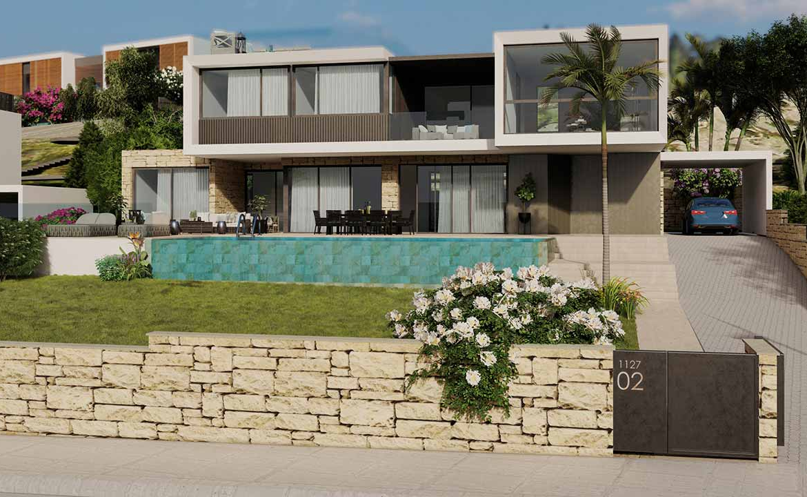 Viewpoint Hills Villa No. 1240 is a modern state of the art luxury 4 bedroom villa for sale in Peyia, Cyprus. The villa is close to the renowned blue flag beaches of Coral Bay and the spectacular landscapes of the Akamas National Park in Peyia. The villa features a private swimming pool, large terraces, spacious interiors with high-quality finishes. The residents of this beautiful property will be able to enjoy the unobstructed breath-taking views of the Mediterranean Sea.