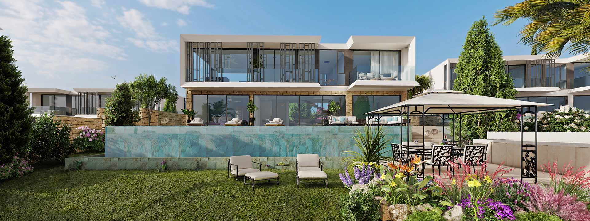 Viewpoint Hills Villa No. 1252 is a modern state of the art luxury 5 bedroom villa for sale in Peyia, Cyprus. The villa is close to the renowned blue flag beaches of Coral Bay and the spectacular landscapes of the Akamas National Park in Peyia. The villa features a private swimming pool, large terraces, spacious interiors with high-quality finishes. The residents of this beautiful property will be able to enjoy the unobstructed breath-taking views of the Mediterranean Sea.