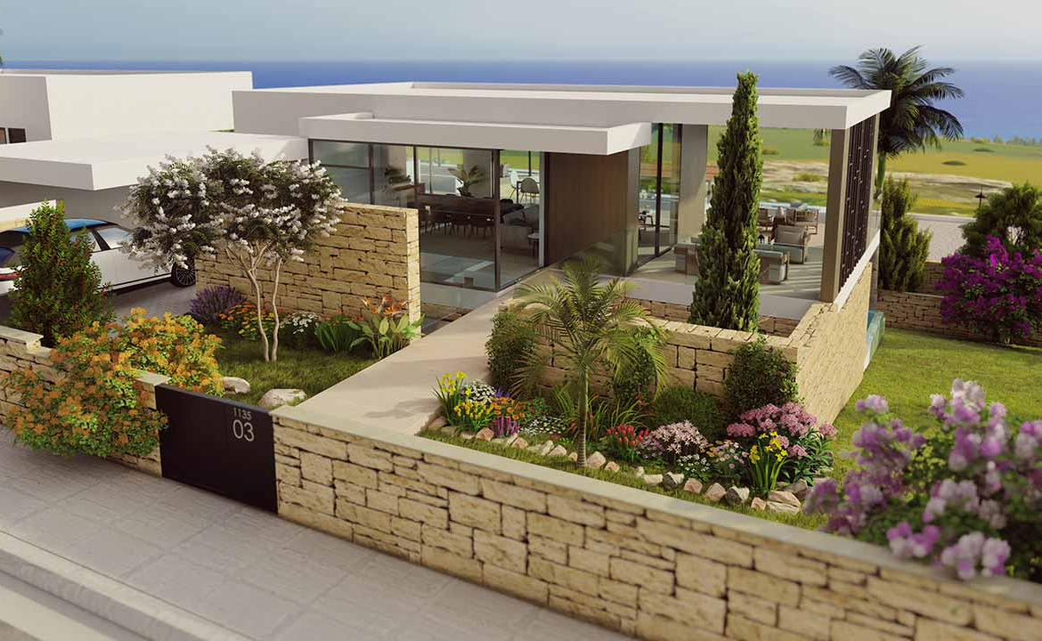 Viewpoint Hills Villa No. 1260 is a modern state of the art luxury 3 bedroom villa for sale in Peyia, Cyprus. The villa is close to the renowned blue flag beaches of Coral Bay and the spectacular landscapes of the Akamas National Park in Peyia. The villa features a private swimming pool, large terraces, spacious interiors with high-quality finishes. The residents of this beautiful property will be able to enjoy the unobstructed breath-taking views of the Mediterranean Sea.